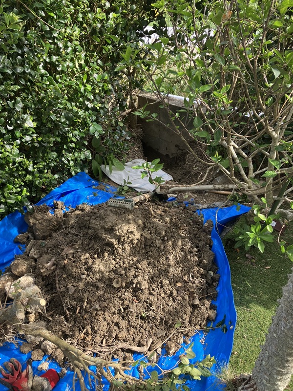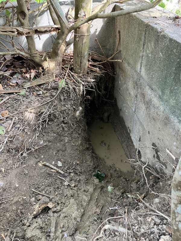 庭を確認中、水の音が聞こえたので掘ってみると正解でした